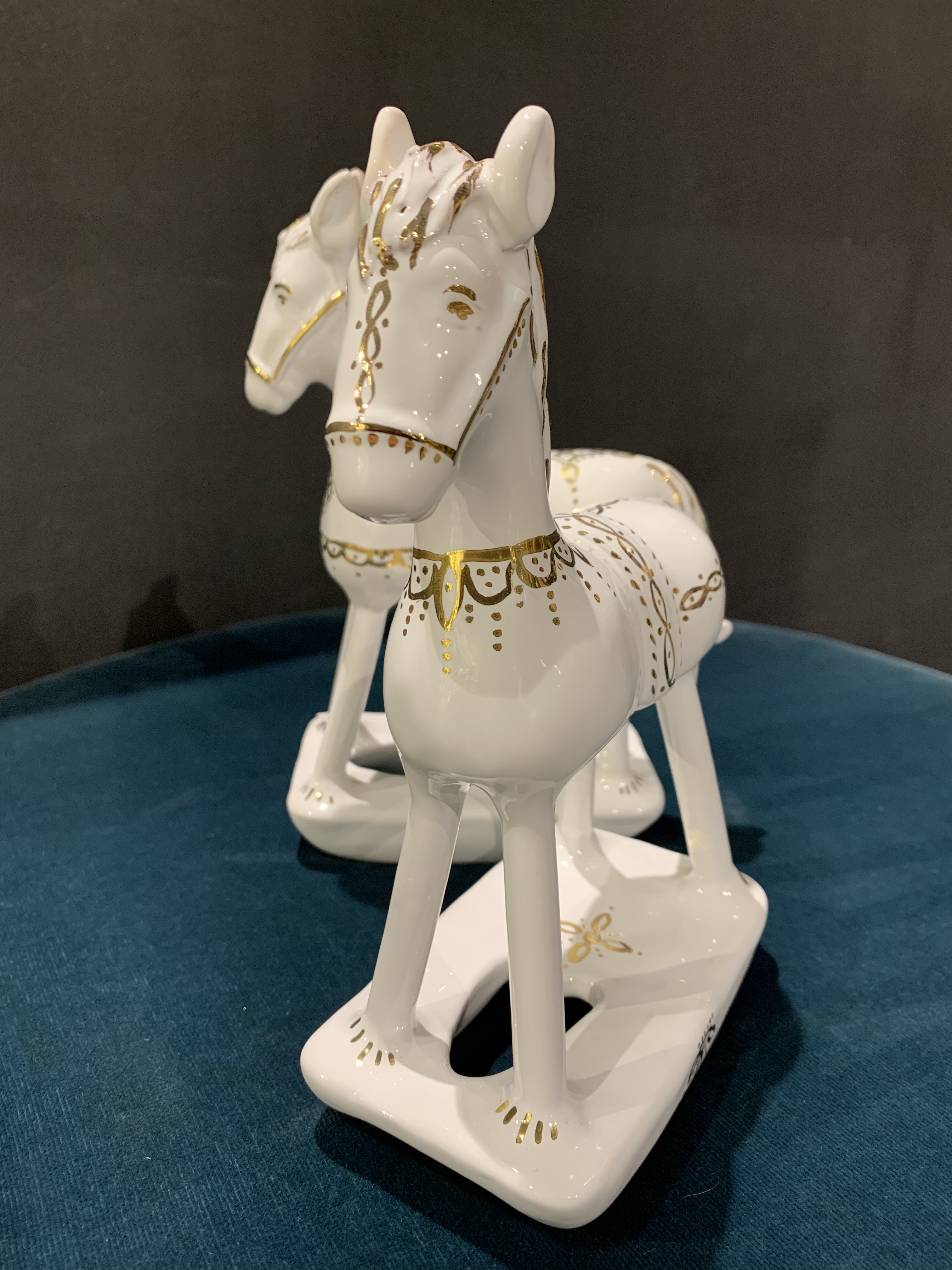 Cavallino a dondolo in ceramica.