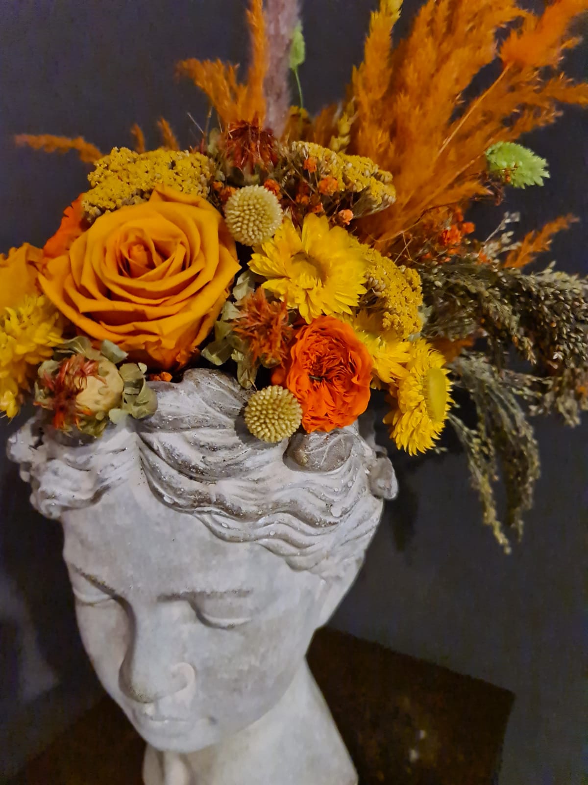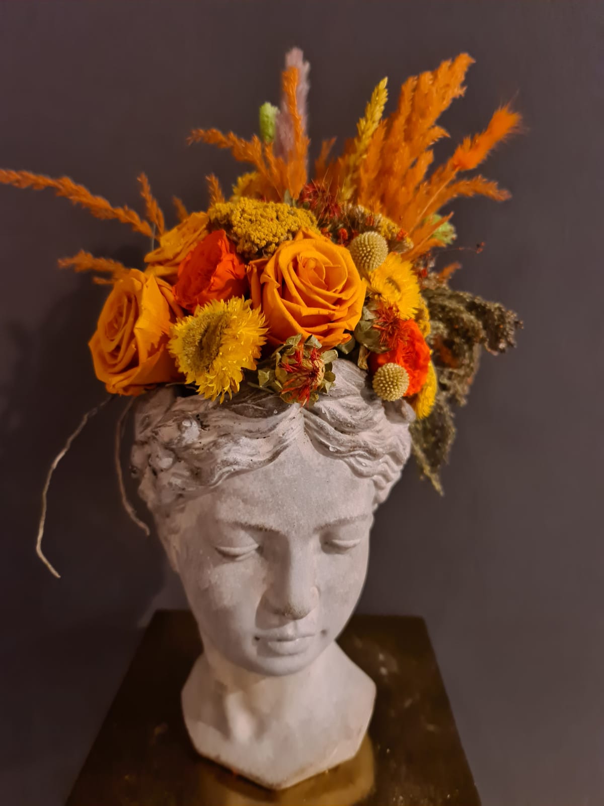 Testa fiorita con elementi duraturi arancio large