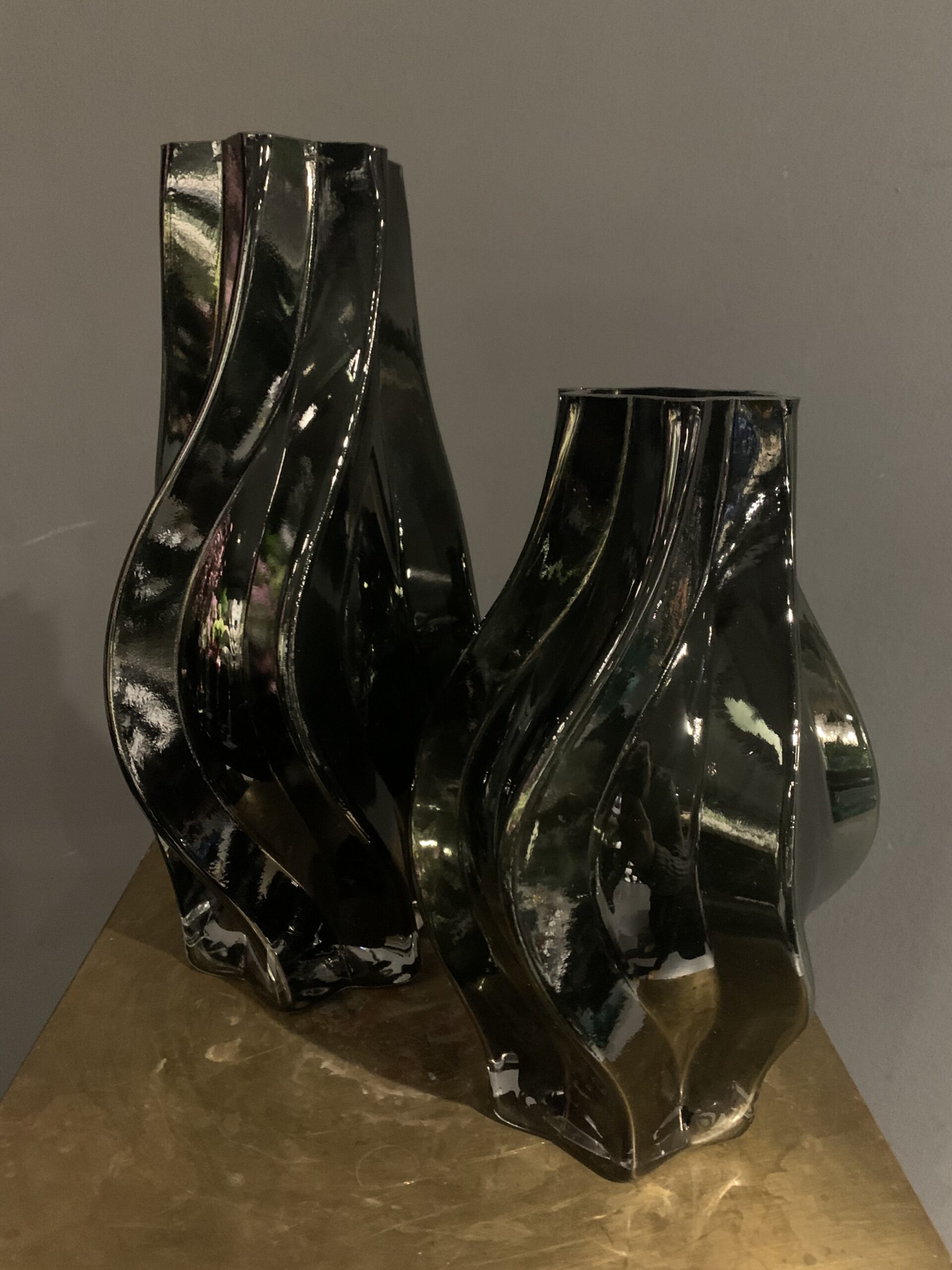 Vaso in vetro modello stella. Colorazione con sfumature verde scuro.