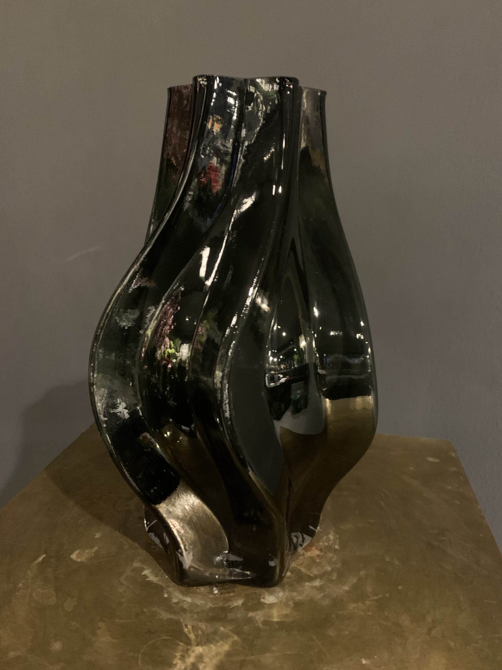 Vaso in vetro modello stella. Colorazione con sfumature verde scuro.