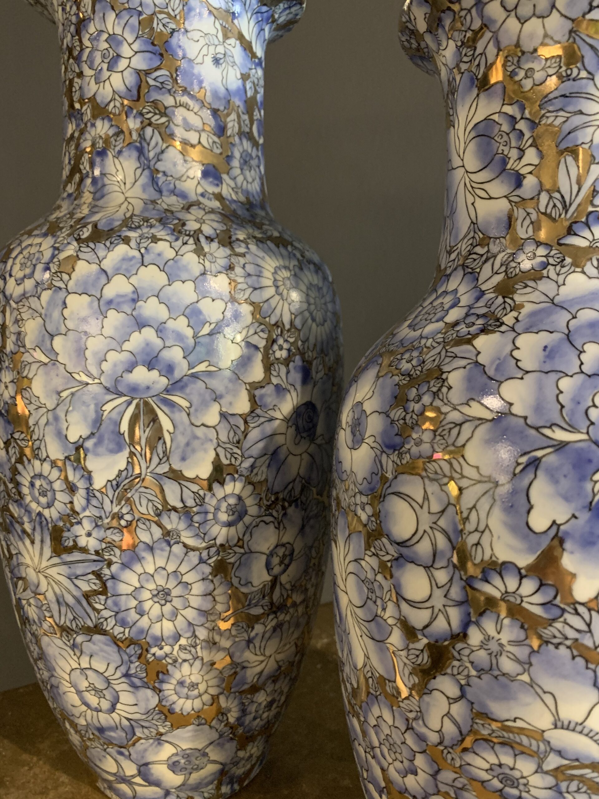 Vaso tradizionale cinese. Dipinto a mano, in ceramica, con decorazioni a motivo floreale e rifiniture color oro.
